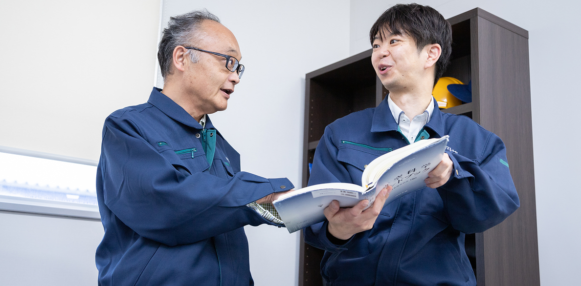 | やりがい | 自分の判断や工夫が、そのまま設備の仕上がりに表れる実感。機械が思い通りに動いた瞬間は、心の中で思わずガッツポーズが出るほどです。毎回異なる条件に向き合う中で、自分の幅が着実に広がっていく。挑戦を応援してくれる風土も、大きな後押しになっています。 |