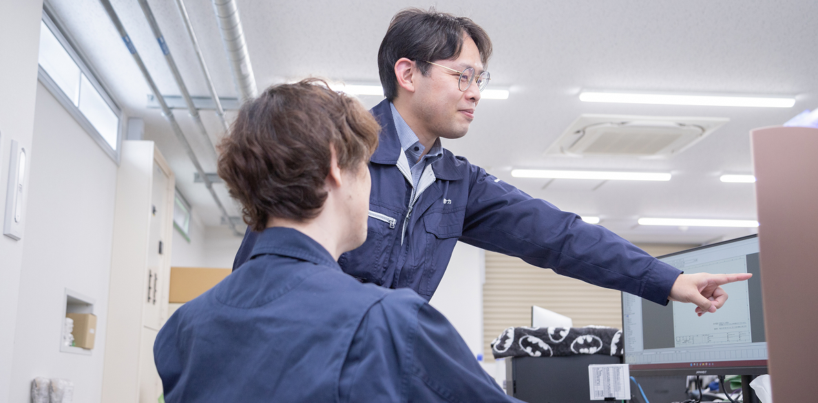 | 仕事内容 | 配線図の設計から装置への配線、制御ソフトのプログラミングまで、電気まわりを一手に担います。設計や組立の工程を経て完成した機械に“命”を吹き込む役割。見えないところにこそ技術者としての矜持を込める、責任とやりがいの大きな仕事です。 |