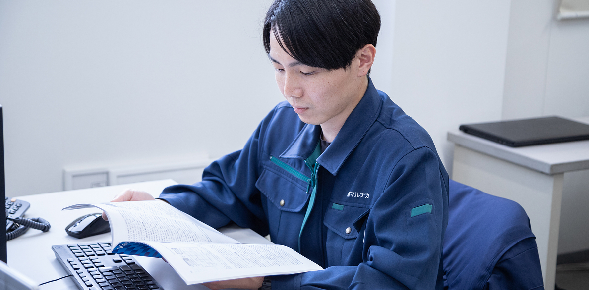 | 仕事内容 | まずは現場で手を動かしながら、図面の意味や構造を“体で”理解していく。設計補助を通して、少しずつ装置の仕組みが見えてくる。先輩のそばで学び、週1回の技術研修で知識を深める日々です。 |